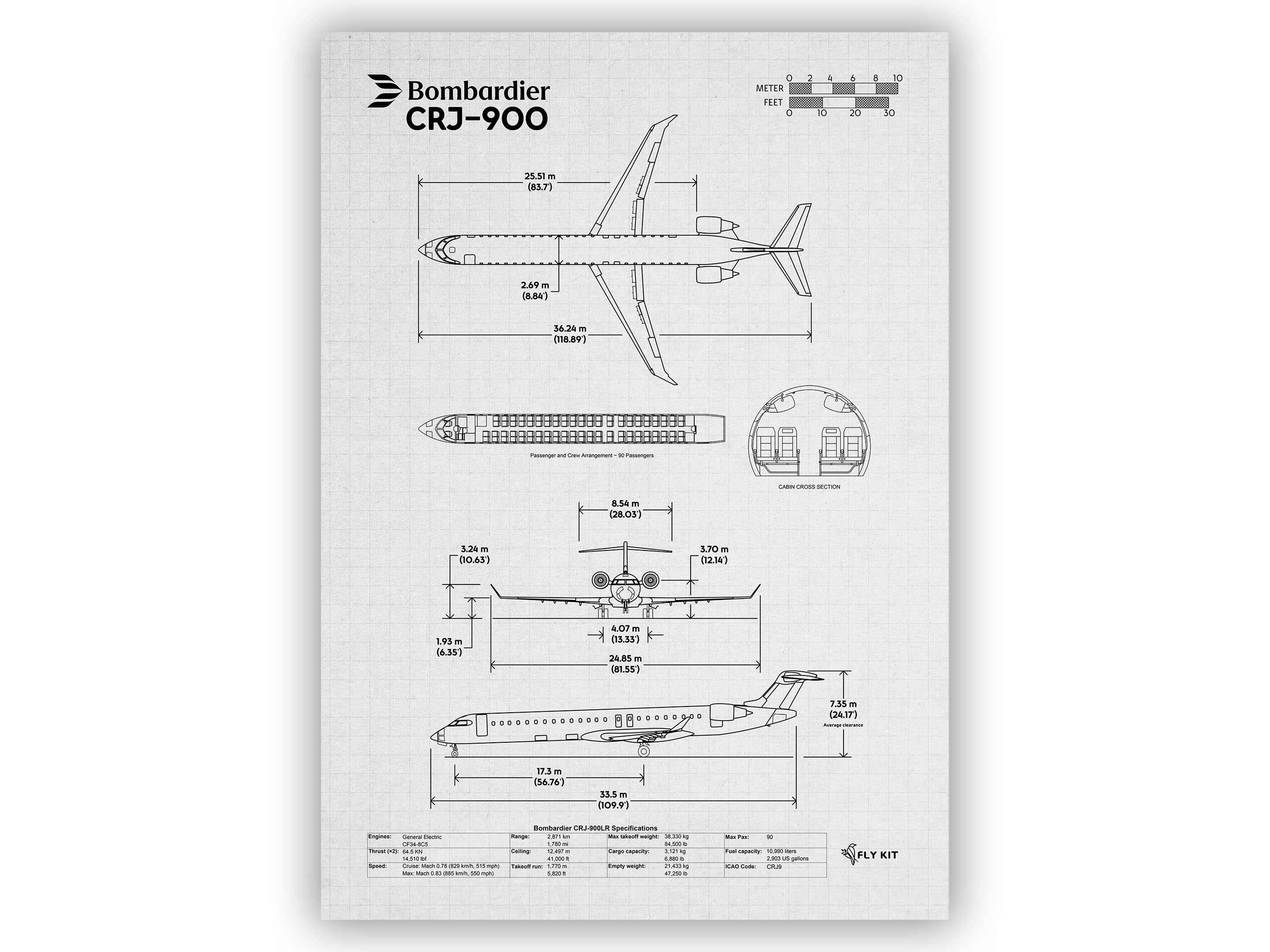 At FlyKit, every Bombardier CRJ-900 Portrait Blueprint Poster reflects accuracy and passion.