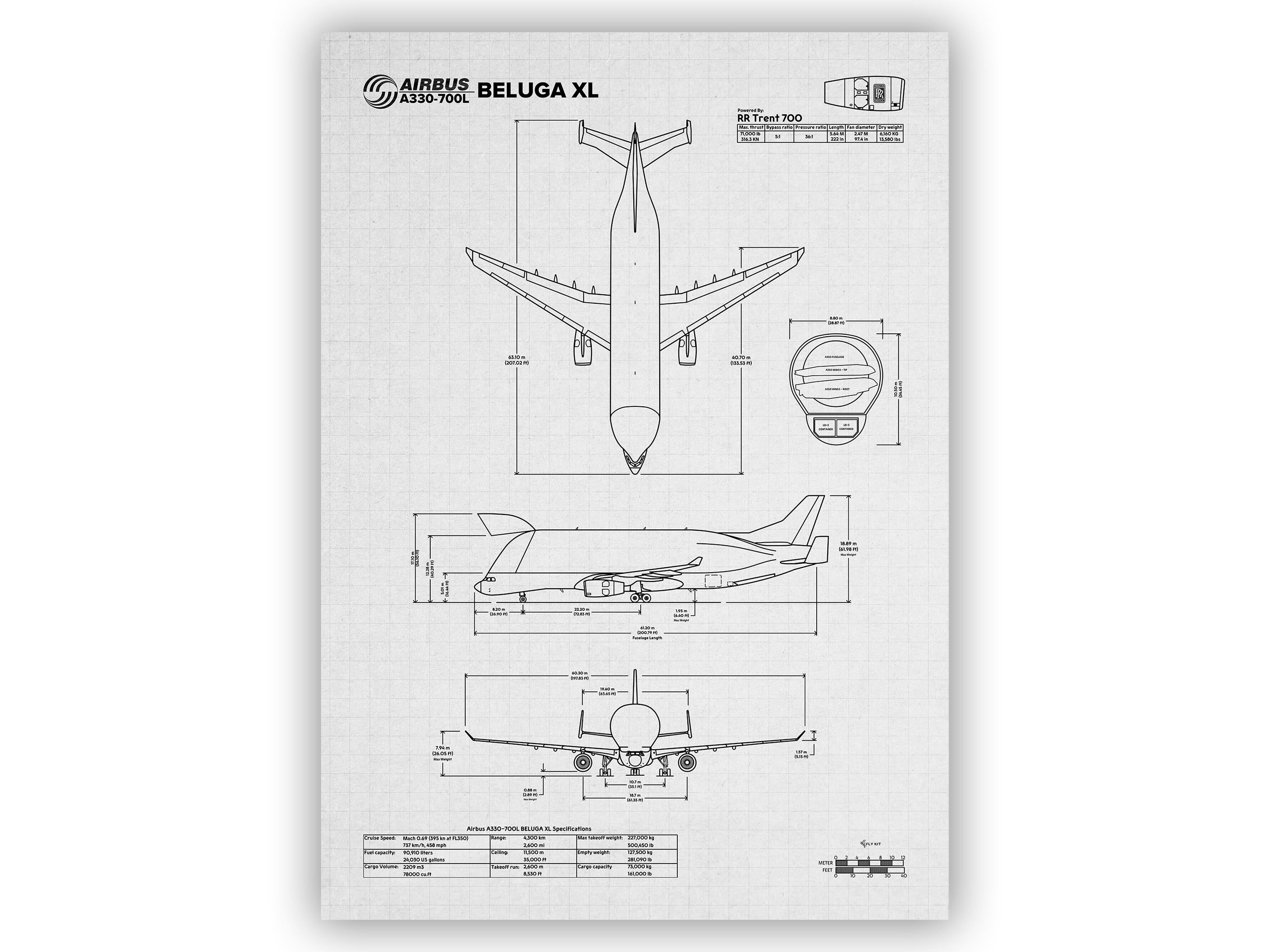 🎁 Perfect for collectors and aviation lovers The Airbus A330-700XL Beluga Portrait Blueprint Poster makes a striking gift for collectors and aviation fans. It celebrates Airbus’s most distinctive aircraft, combining functionality and character. A centrepiece for display in homes, lounges, or offices.