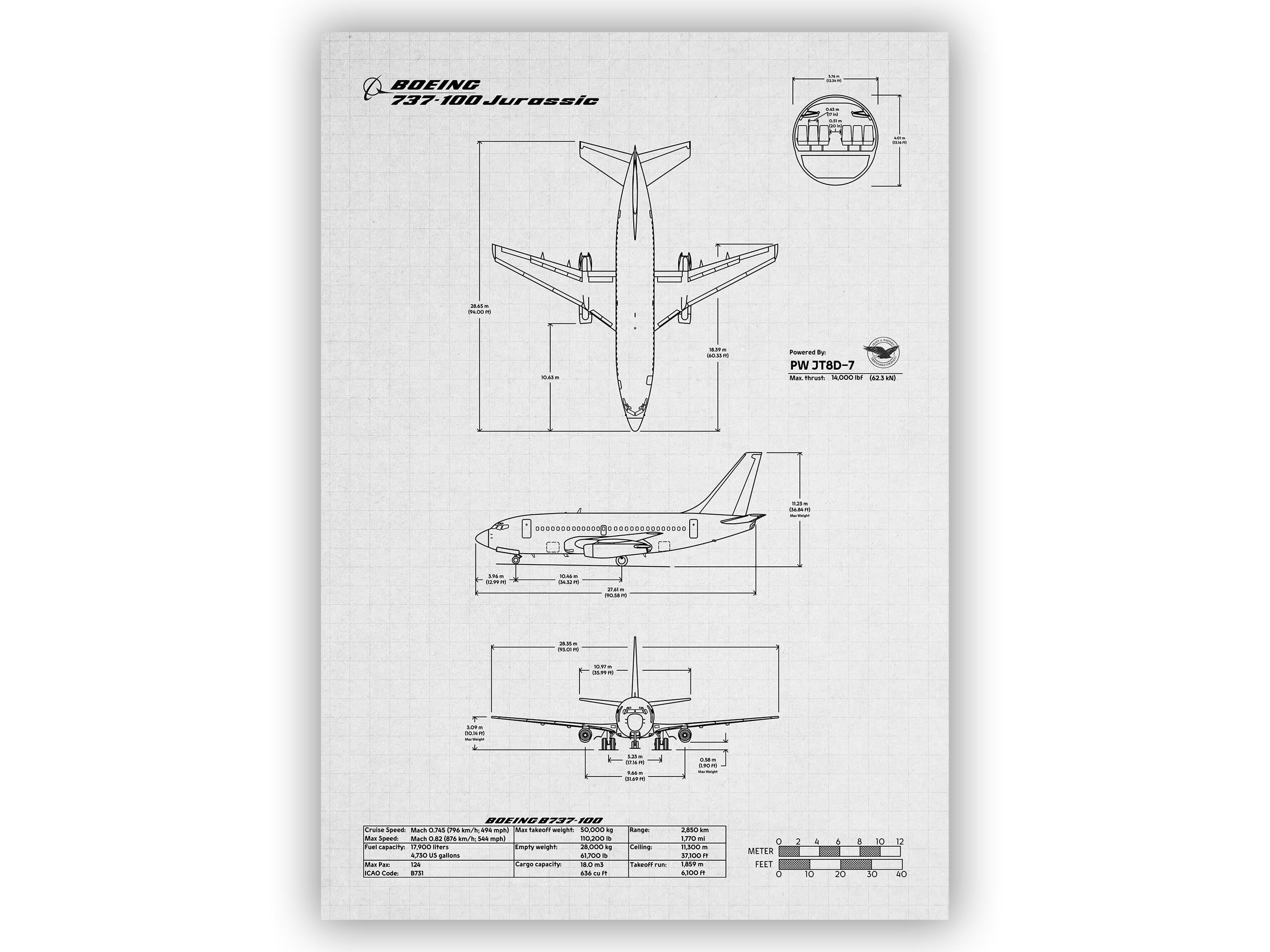 Boeing B737-100 Portrait Blueprint Poster