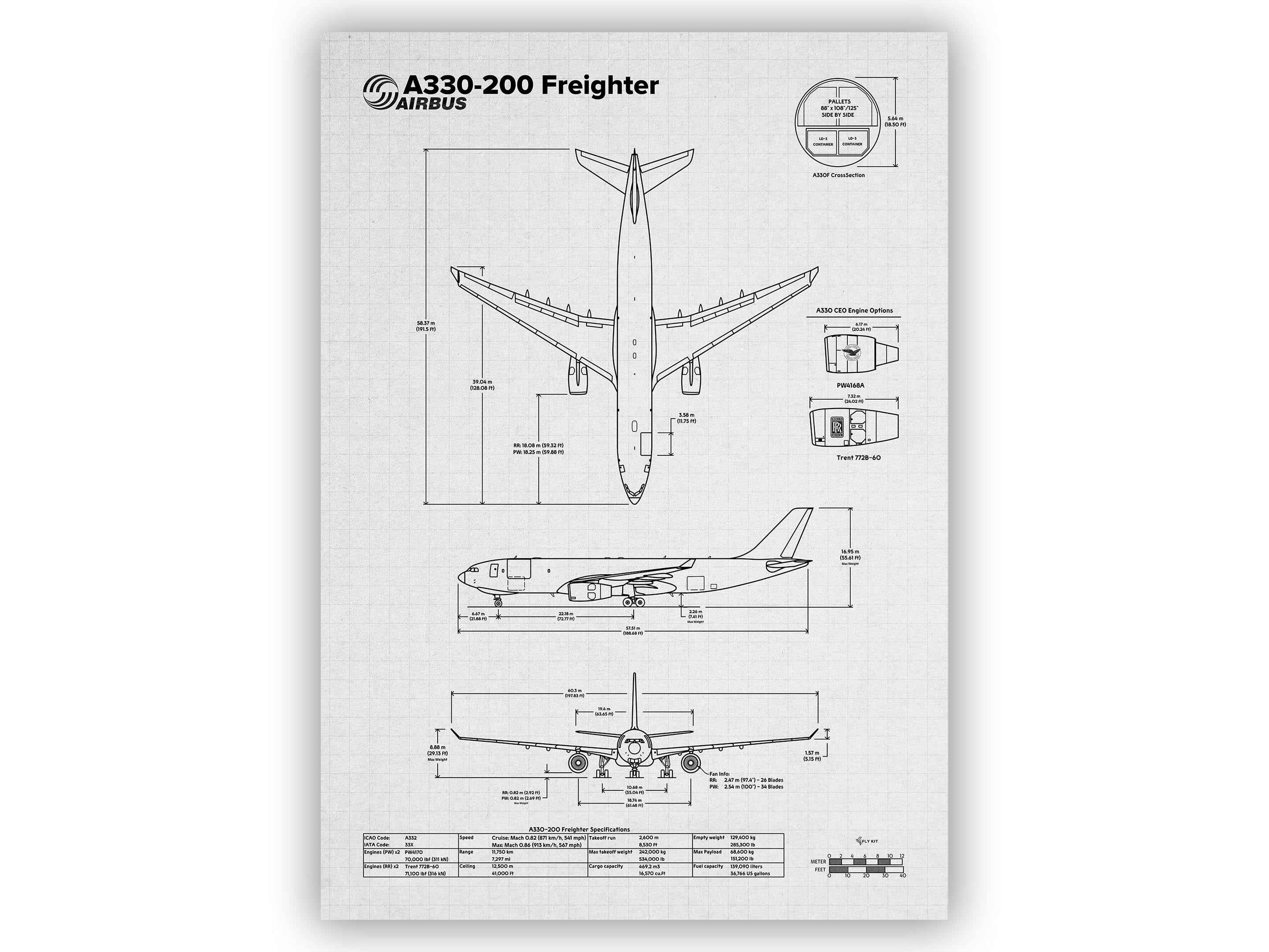 ✨ The Airbus A330-200F Portrait Blueprint Poster honours one of the most successful twinjet freighters. Based on the A330-200, it features reinforced floors, stronger frames, and wide cargo access. Its unique nose gear blister guarantees level main decks for loading containers.