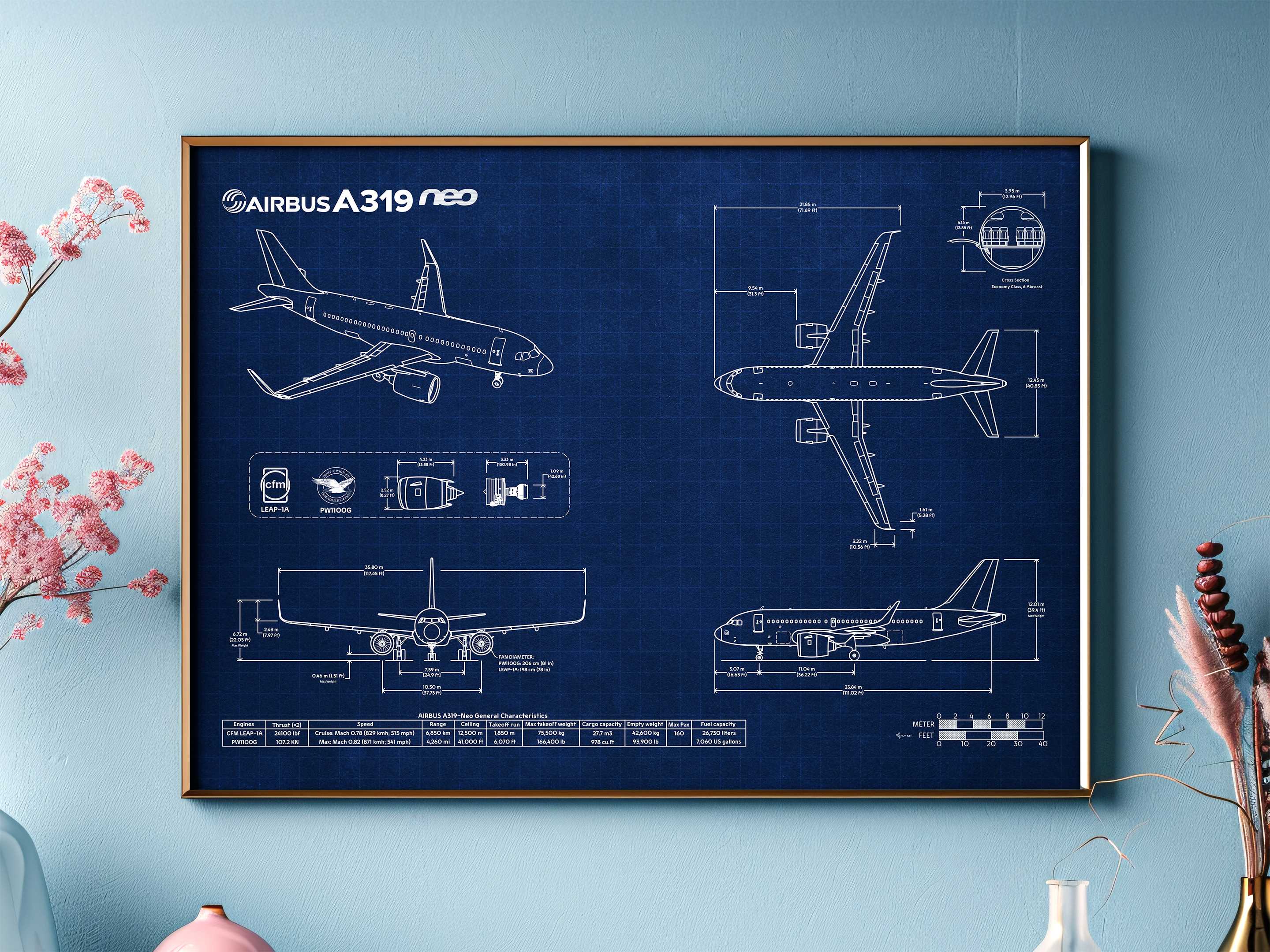 🎁 Perfect for collectors and aviation lovers This blueprint makes a thoughtful gift for Airbus fans, pilots, or aviation collectors. It celebrates the A319neo, admired for combining new efficiency with proven Airbus reliability. Display it in homes, offices, or studios where it inspires daily admiration.