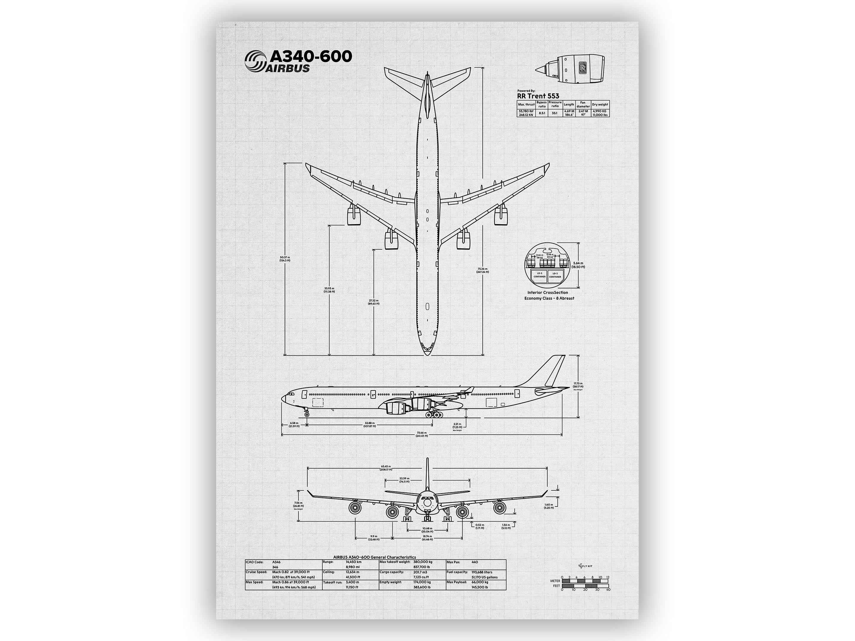 🖼️ Premium quality This poster is printed on durable 200 gsm matte paper with fade-resistant ink. Each Airbus A340-600 Portrait Blueprint Poster arrives frame-ready. Its clean black-and-grey blueprint finish complements modern or classic décor.