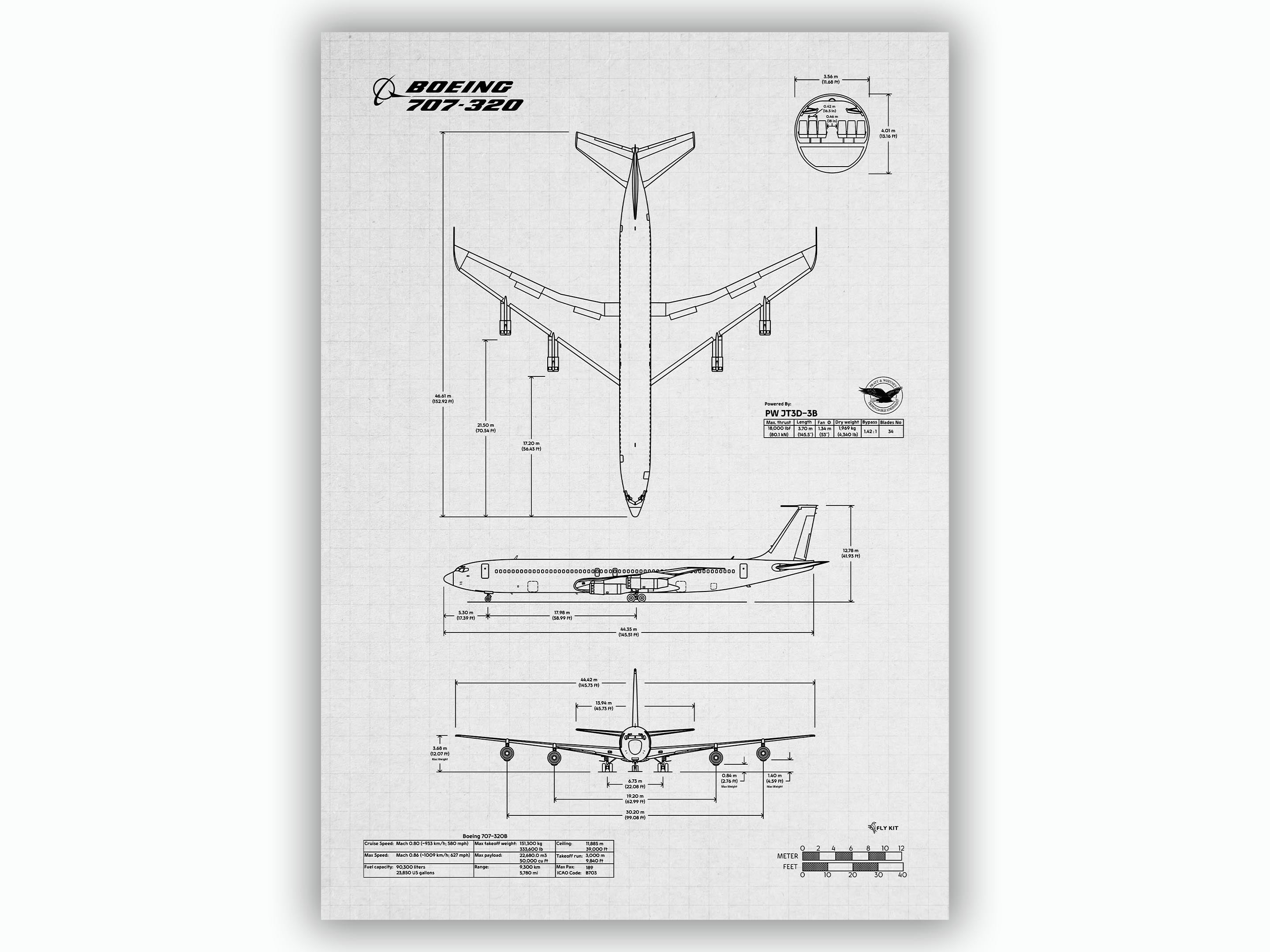 ✨ Craftsmanship and passion At FlyKit, every Boeing B707-320 Portrait Blueprint Poster reflects detail and design passion. With worldwide delivery, collectors can own this tribute to a historic Boeing aircraft.