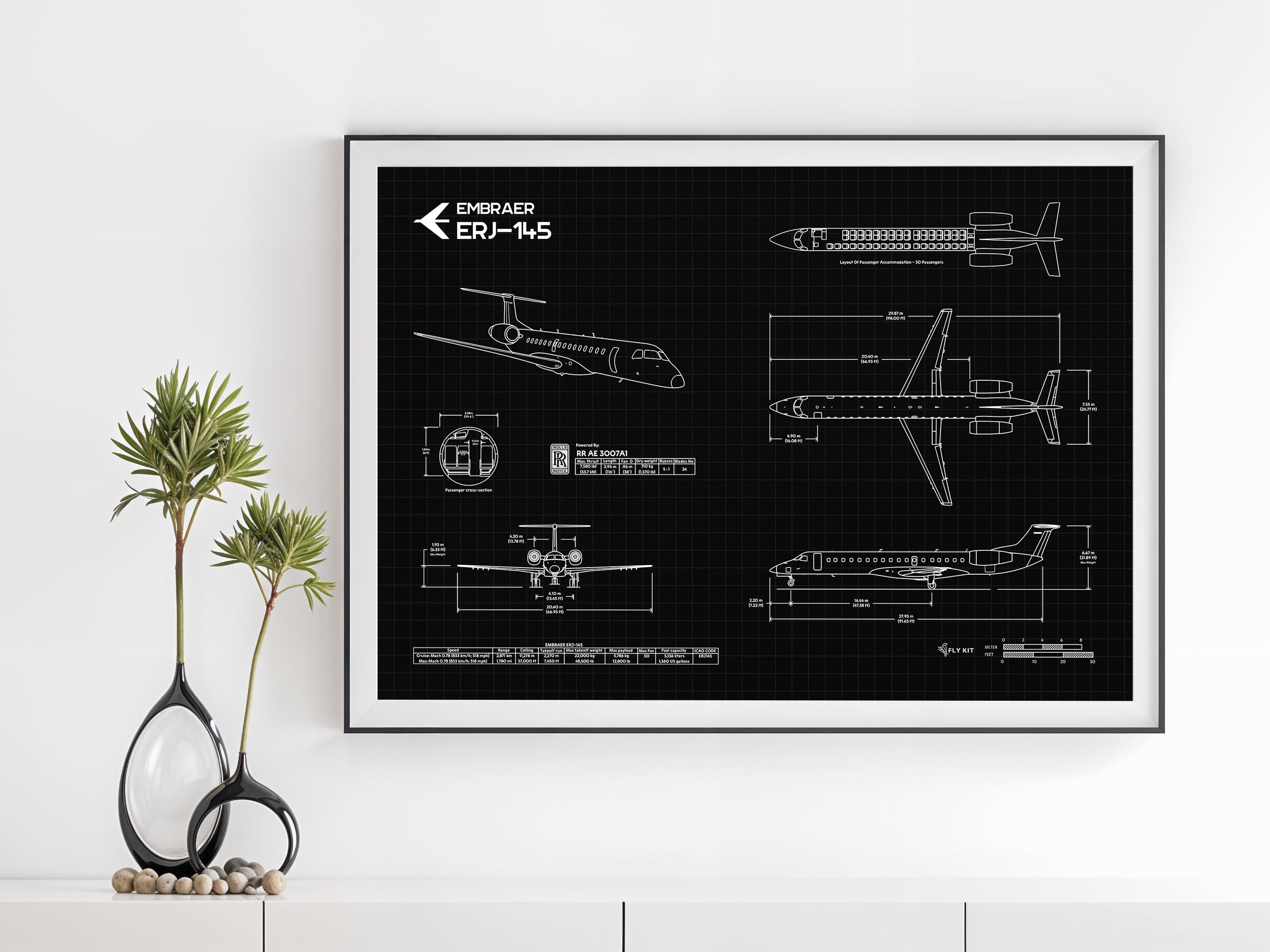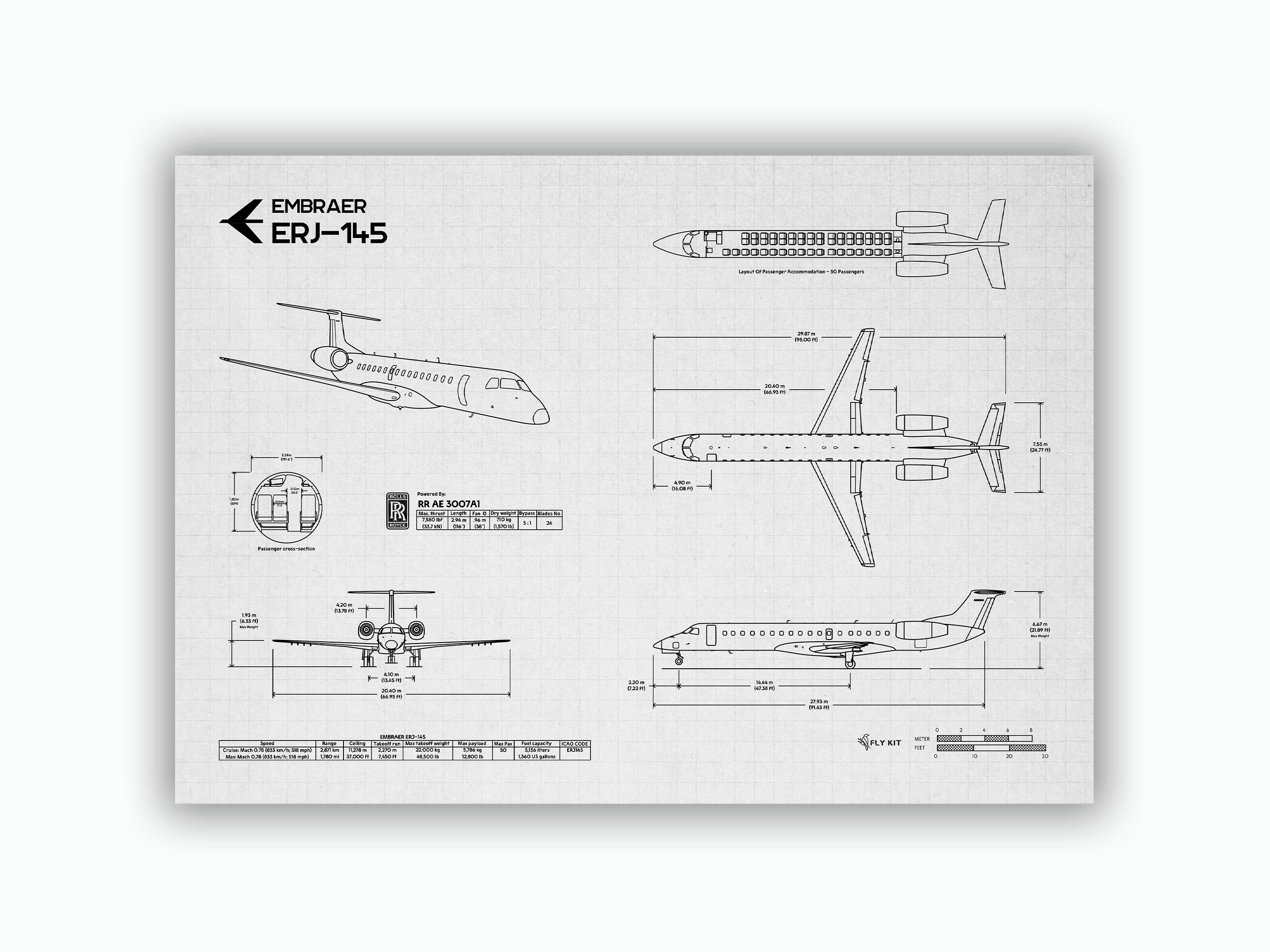 At FlyKit, every Embraer ERJ-145 Landscape Blueprint Poster reflects accuracy and passion.