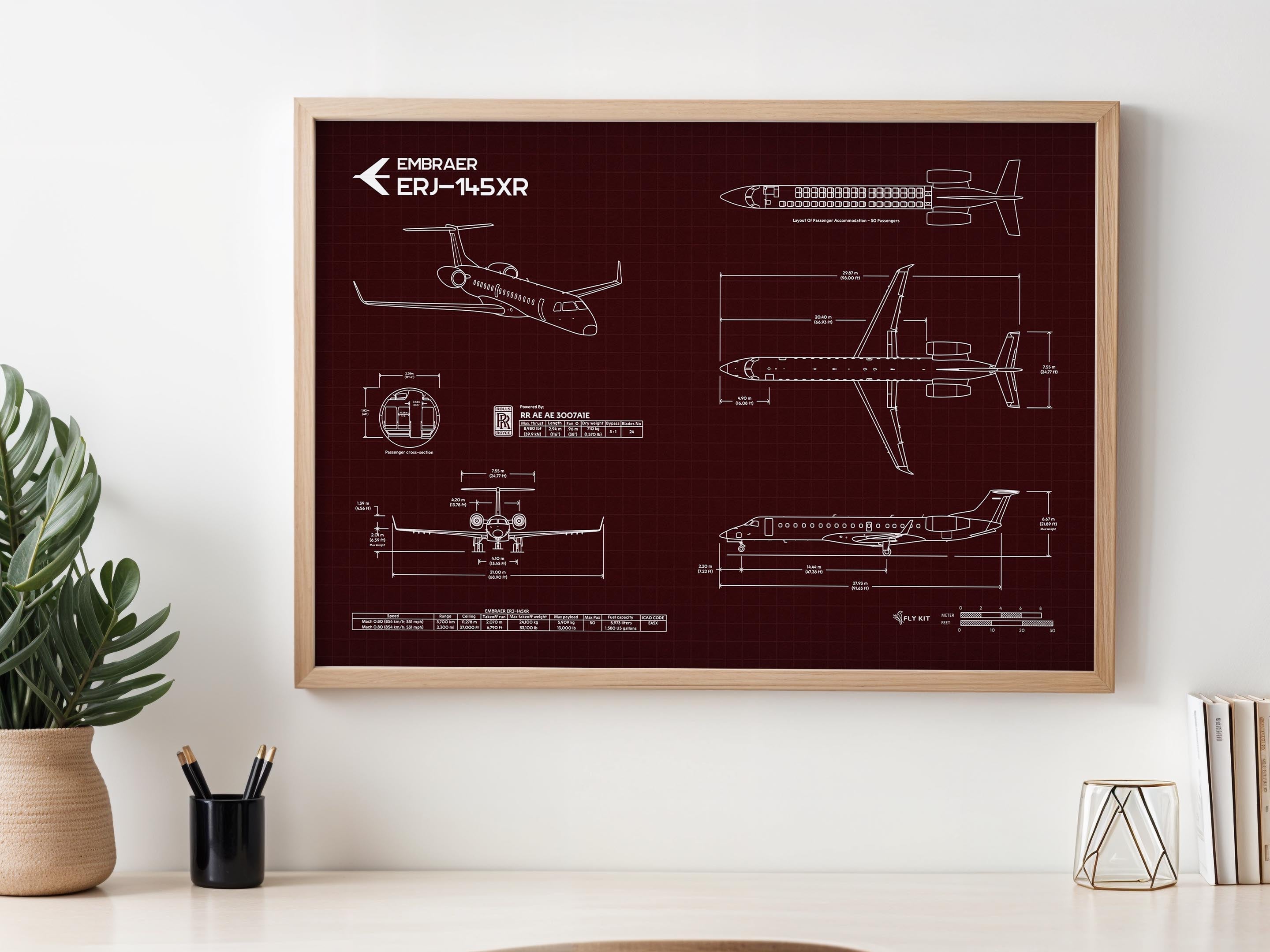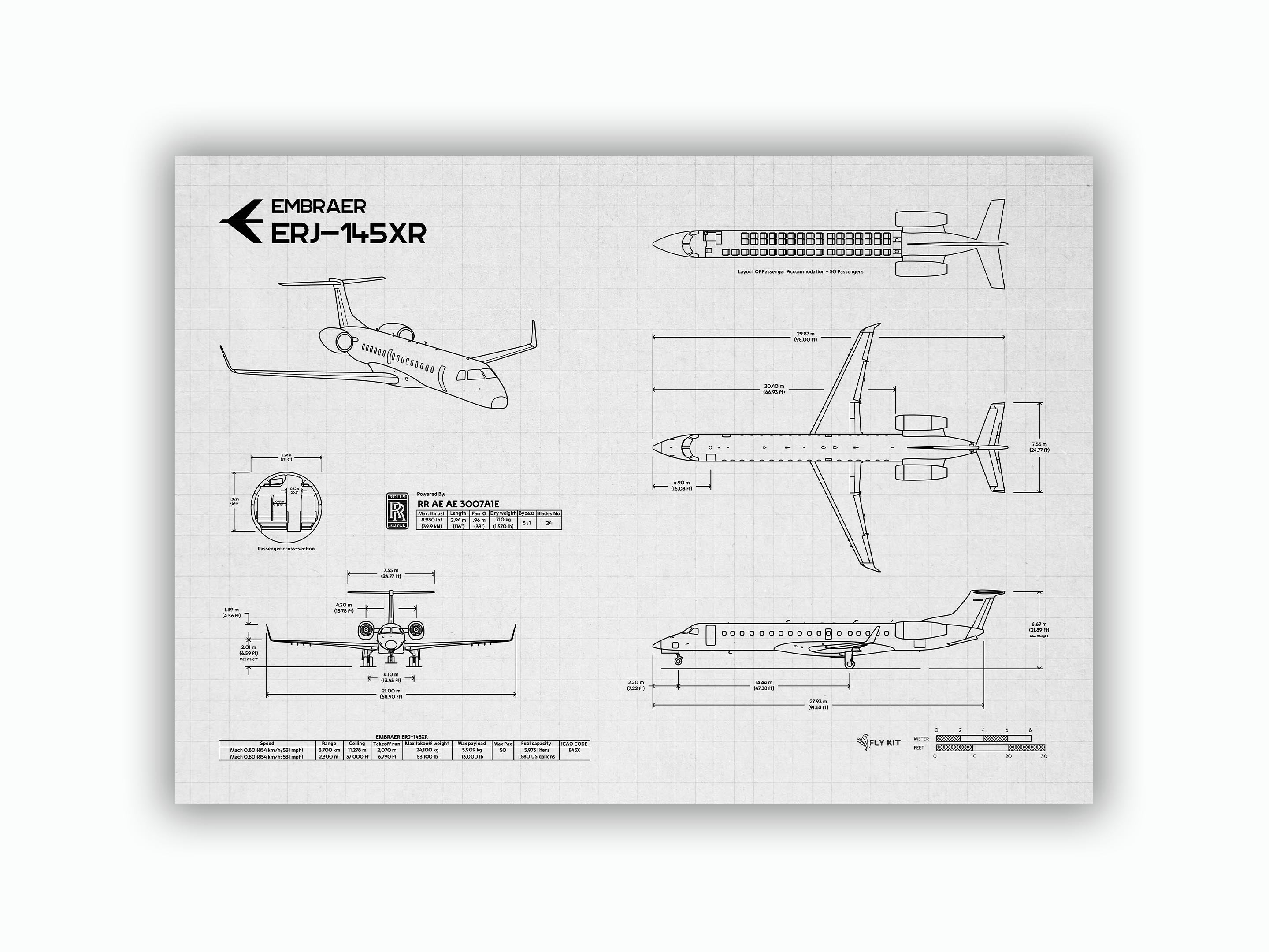 ✨ Embraer ERJ-145XR Landscape Blueprint Poster celebrates the extended-range version of the ERJ family.