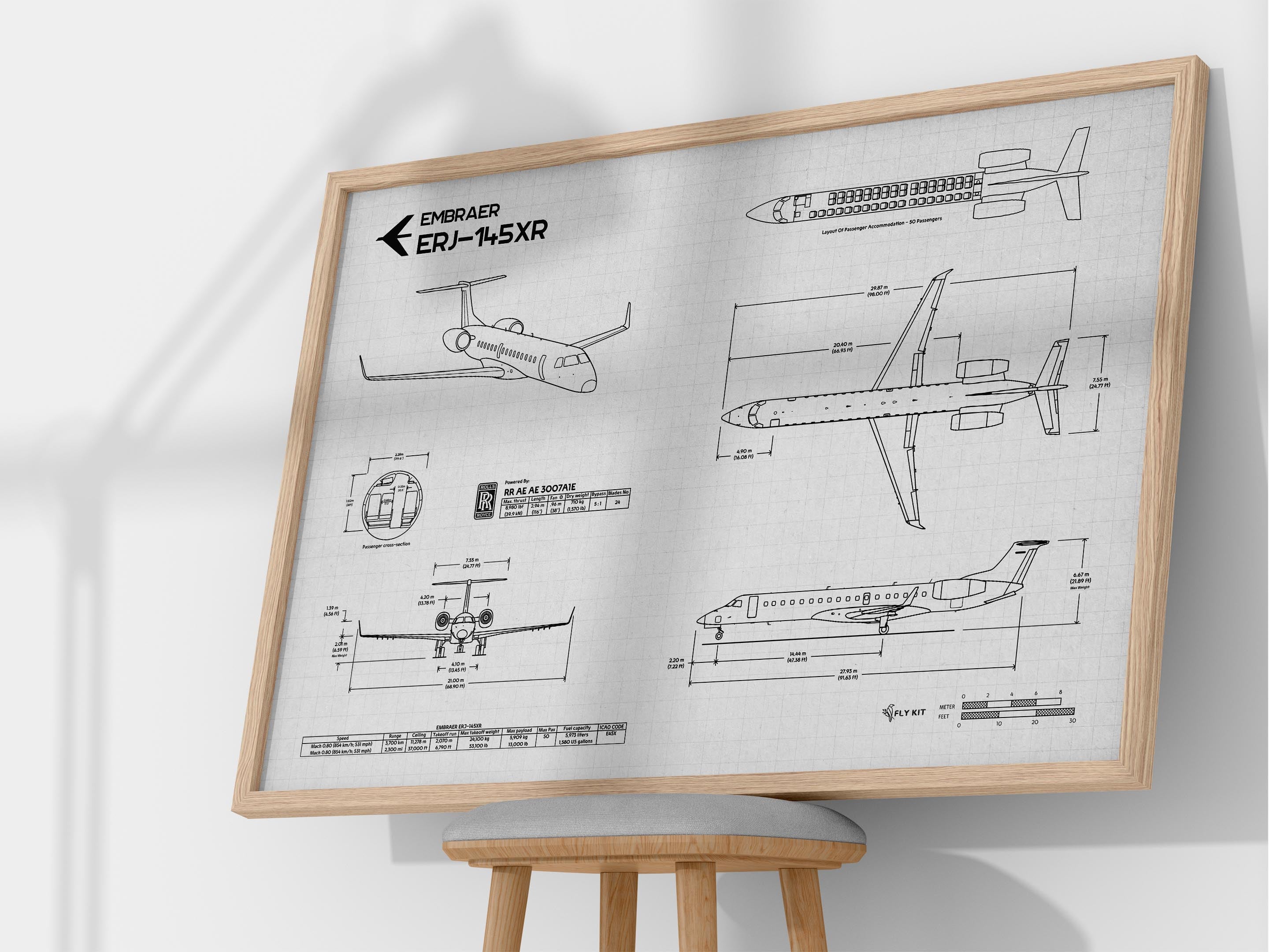 At FlyKit, every Embraer ERJ-145XR Landscape Blueprint Poster reflects accuracy and passion.