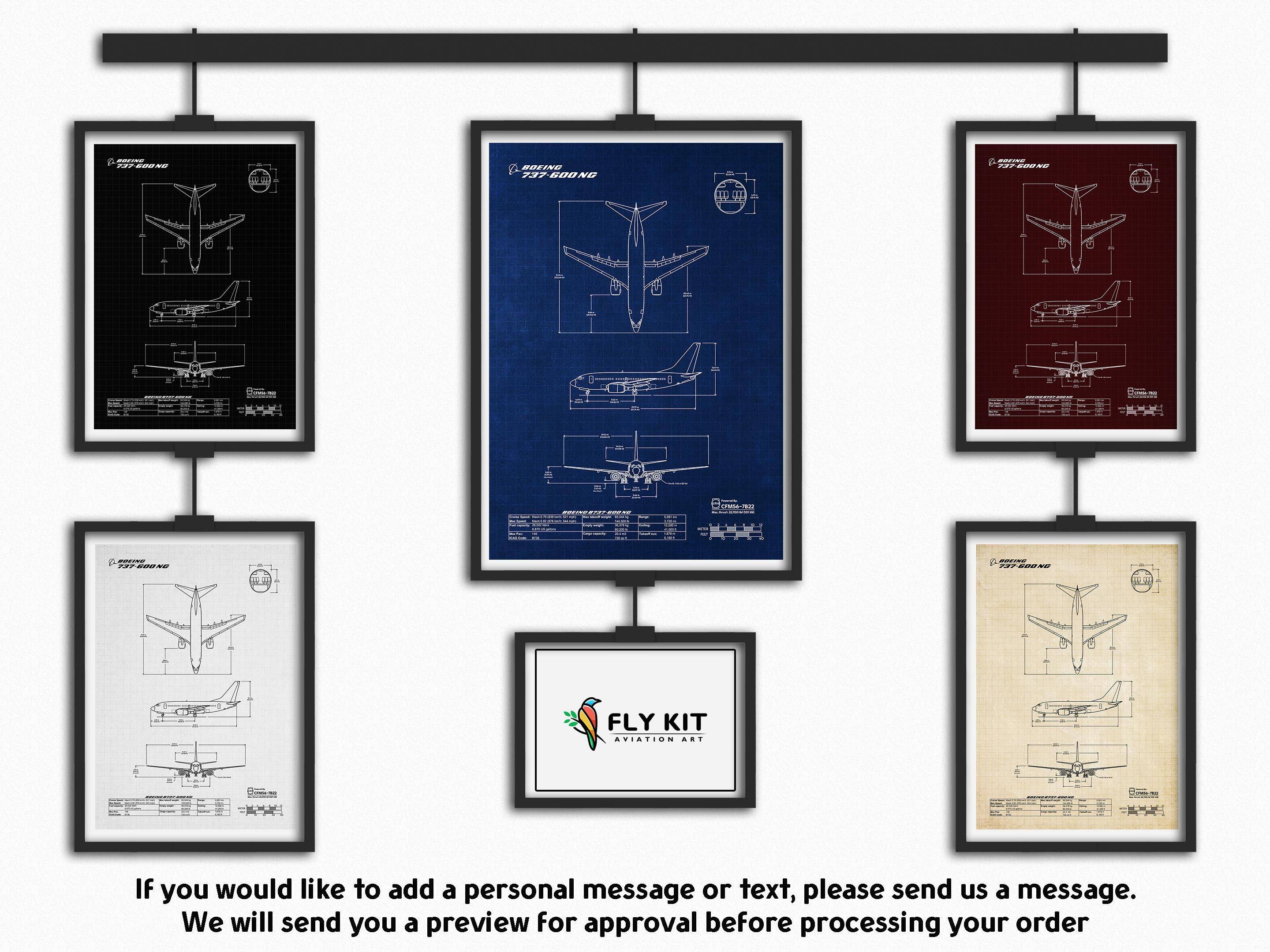 Craftsmanship and passion At FlyKit, every Boeing B737-600 Portrait Blueprint Poster is crafted with precision. With global delivery, collectors everywhere can secure this tribute to a rare Boeing aircraft.